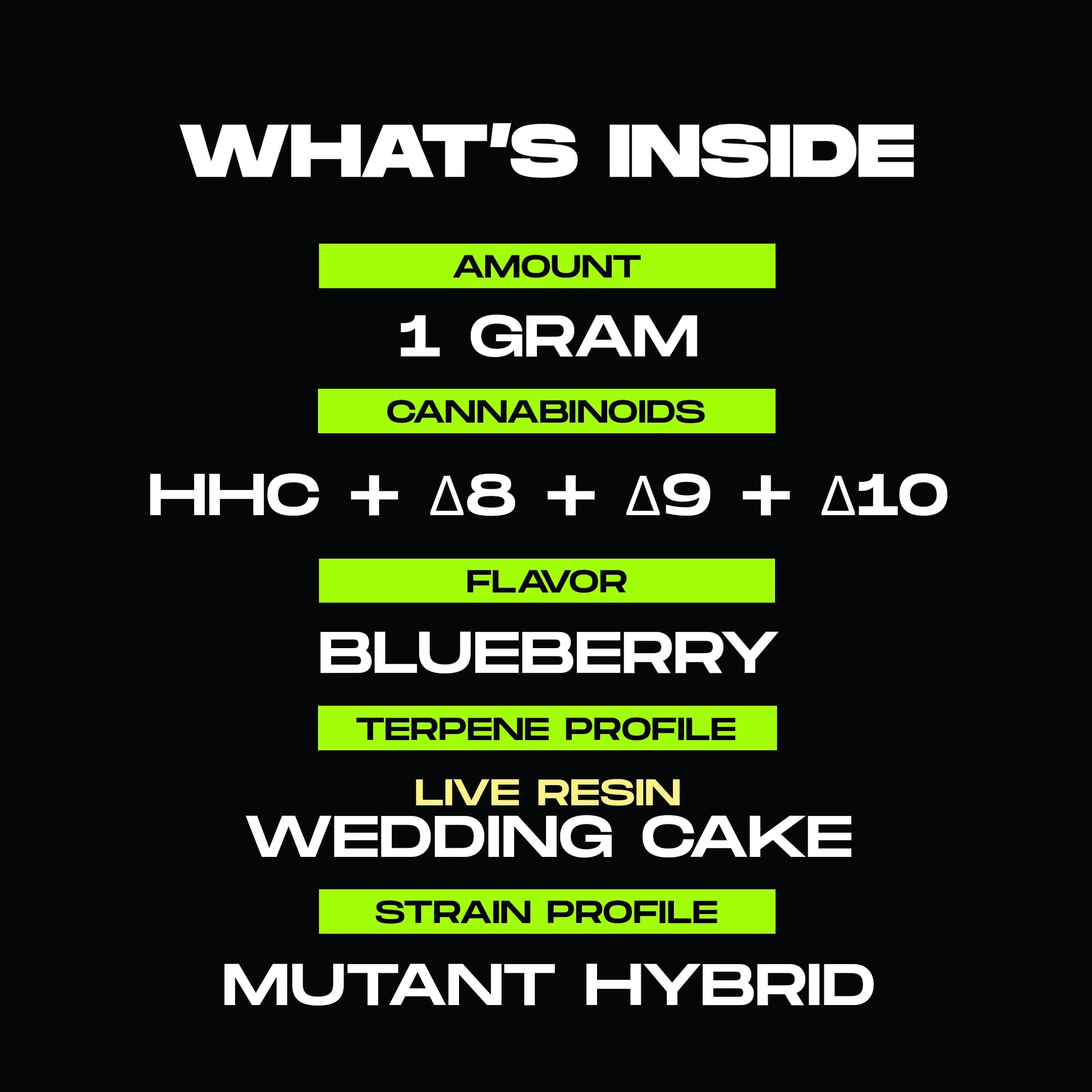 1 Gram Live Resin Vape Cartridge: Wedding Cake (HHC, D8, D9, D10)
